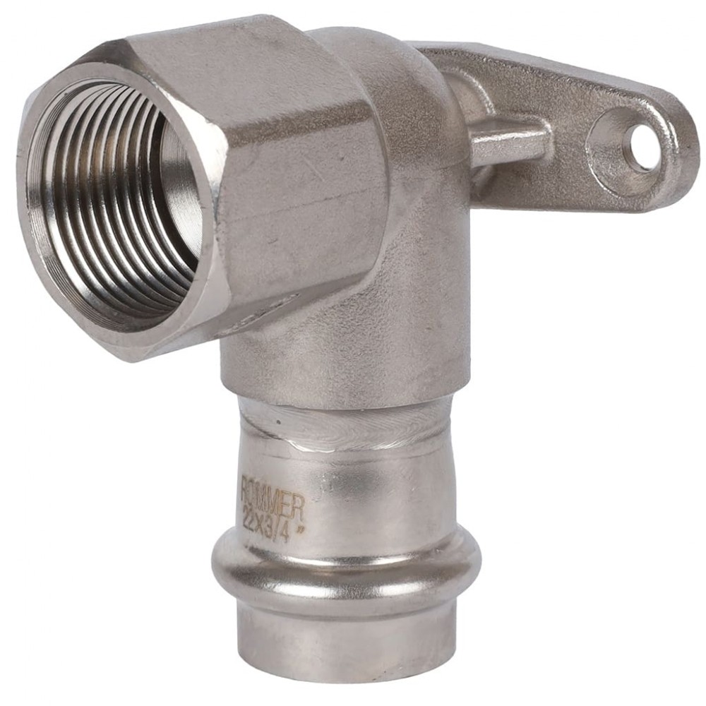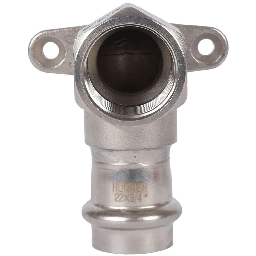 Угольник настенный Rommer с креплением 22х3/4 ВПр-ВР, нержавеющая сталь