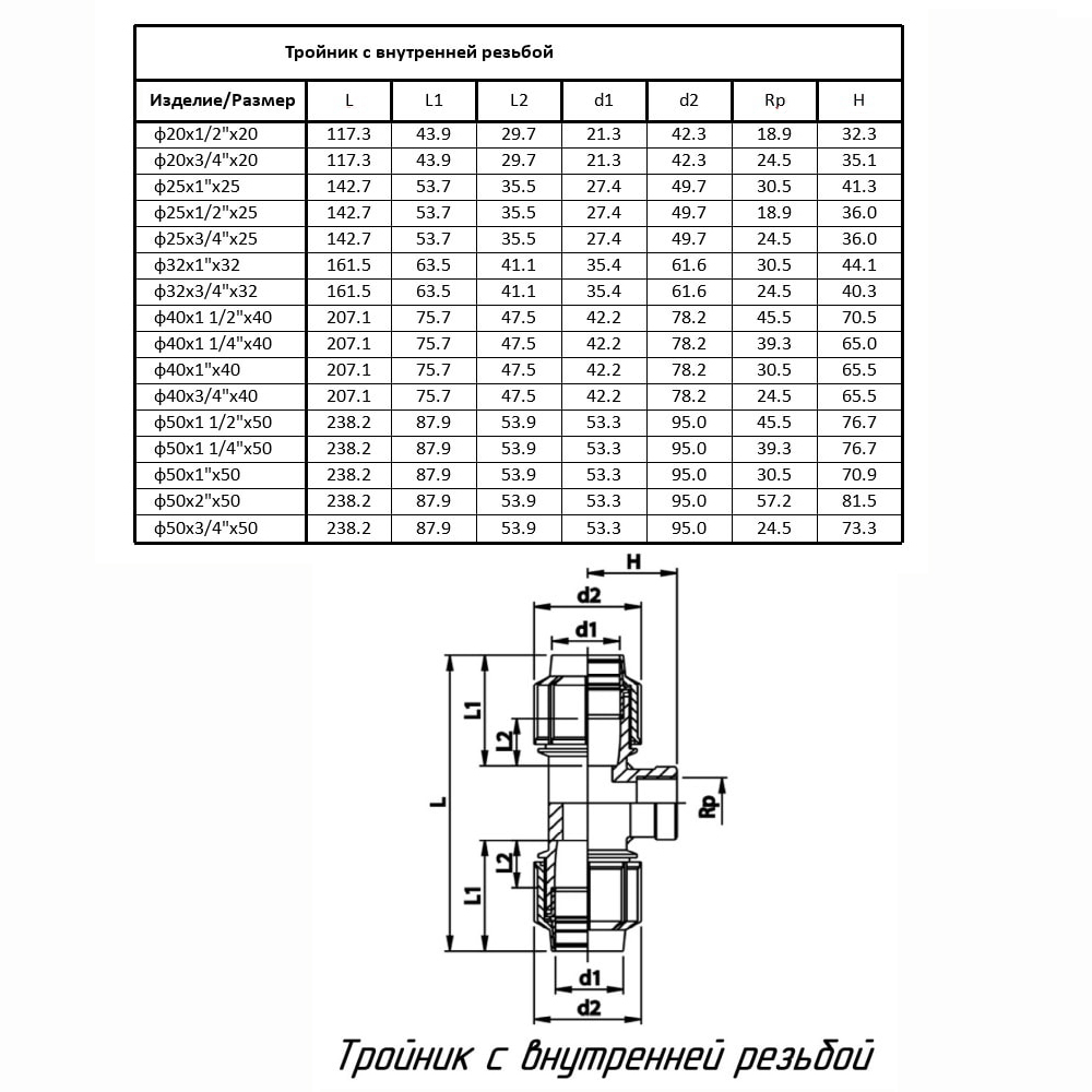 Тройник компрессионный с внутренней трубной резьбой является универсальной деталью полиэтиленового трубопровода имеющий внутреннюю резьбу с шагом, соответствующим стандартным размерам стальных труб, благодаря чему, этот тройник можно использовать для перехода с ПНД трубы на стальную и наоборот.