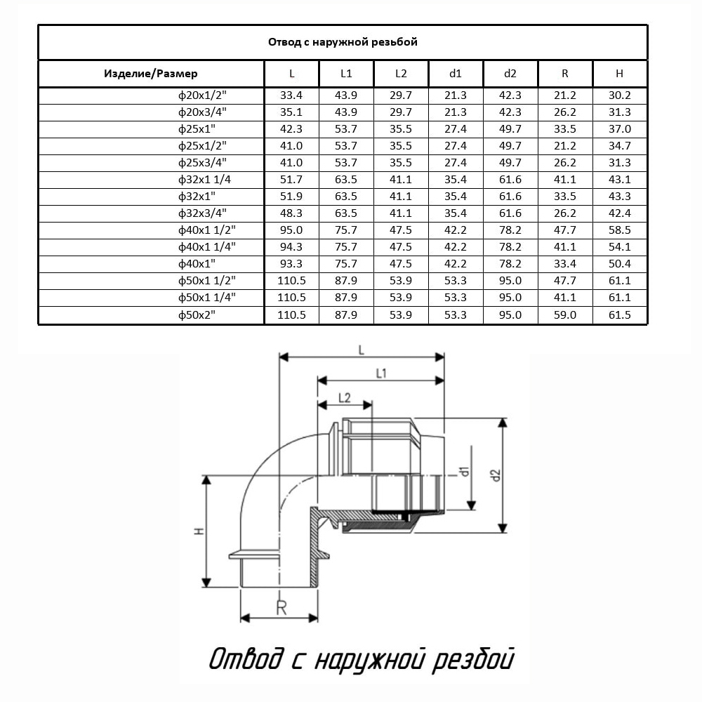 Отводы с наружной трубной резьбой. Предназначен, для возможности легкого перехода со стального трубопровода на трубопровод из ПНД труб под прямым углом. Отвод компрессионный с наружной резьбой имеет в своем ассортименте очень богатый выбор размеров резьбы, которым не может похвастаться ни один отечественный производитель компрессионных фитингов.