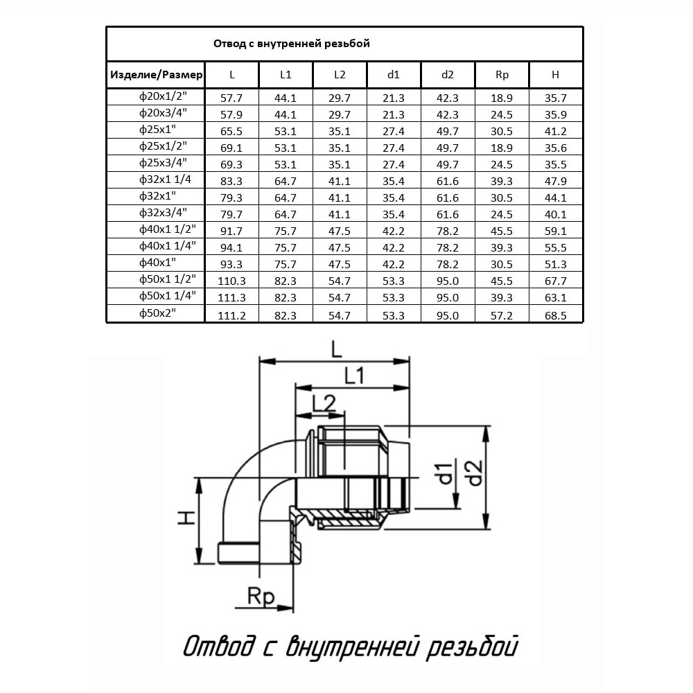 Отвод компрессионный с внутренней трубной резьбой. Предназначен, для возможности легкого перехода со стального трубопровода на трубопровод из ПНД труб под прямым углом. Отвод компрессионный с внутренней резьбой имеет в своем ассортименте очень богатый выбор размеров резьбы, которым не может похвастаться ни один отечественный производитель компрессионных фитингов.