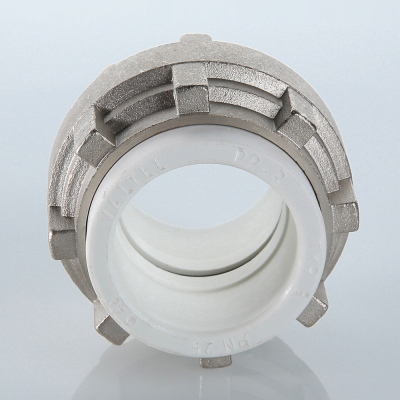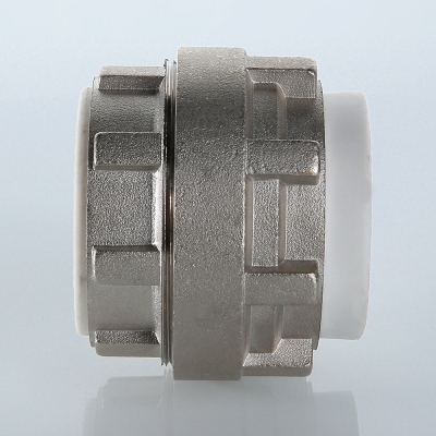 Полипропиленовый фитинг для создания разъемного соединения на полипропиленовом трубопроводе. Соединение частей муфты осуществляется с помощью латунной никелированной накидной гайки. Уплотнительное кольцо выполнено из синтетического каучука EPDM. Монтаж фитинга производится методом раструбной сварки.