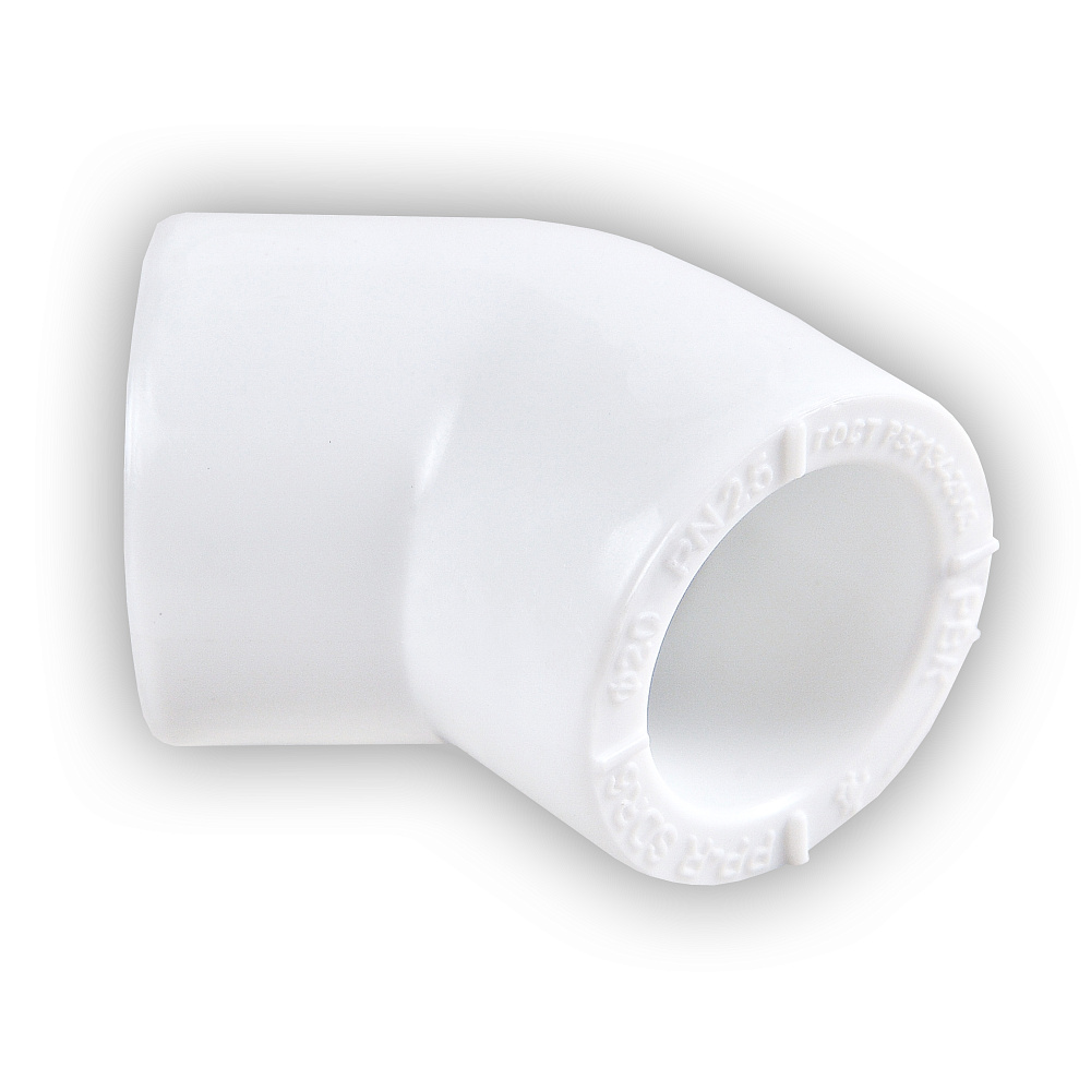 Угольник 45° из полипропилена предназначен для монтажа внутренних систем холодного, горячего водоснабжения и отопления, а также в технологических трубопроводах с рабочей средой, неагрессивной к материалам системы.