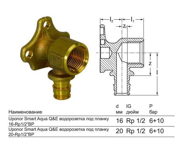 Водорозетка с фланцем для непосредственного крепления к стене или в комбинации с монтажными углами или планками. Изготавливается из латуни. Внутренняя резьба трубная цилиндрическая Rp1/2“ по DIN EN 10226-1, ГОСТ 6211. Внимание: кольцо Uponor Q&E следует заказывать отдельно!