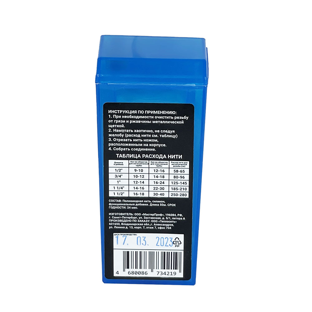 Уплотнительная нить может применяться для всех типов металлических и пластиковых фитингов и труб диаметром до 6 дюймов. Нить устойчива к воздействию температур до +130 градусов С и давления до 16 бар для воды и до 8 бар для газа.