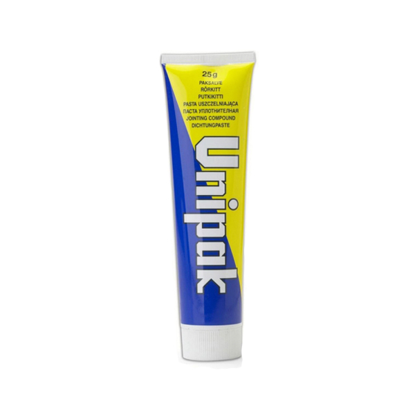 Паста Unipak используется вместе с льняными волокнами для герметизации и уплотнения резьбовых соединений в трубопроводных системах с горячей и холодной водой, а также пара под низким давлением. При  сборке  резьбовых  соединений  труб  и  арматуры  с  помощью пасты  Unipak  и  льняных  волокон  можно  получить  соединения, которые остаются герметичными при температуре до +140° с и давлении до 8 бар.