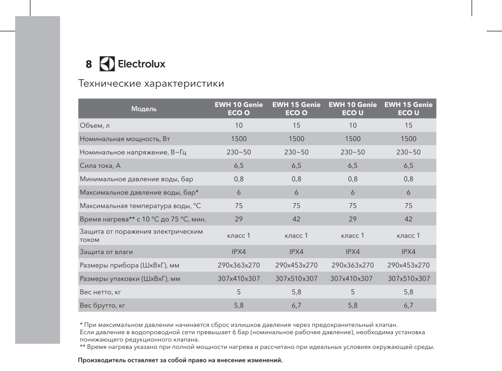 Водонагреватели Electrolux серии EWH 15 Genie ECO при своих скромных размерах отличаются высокой технологичностью и производительностью. Модель идеально подходит для установки над мойкой.