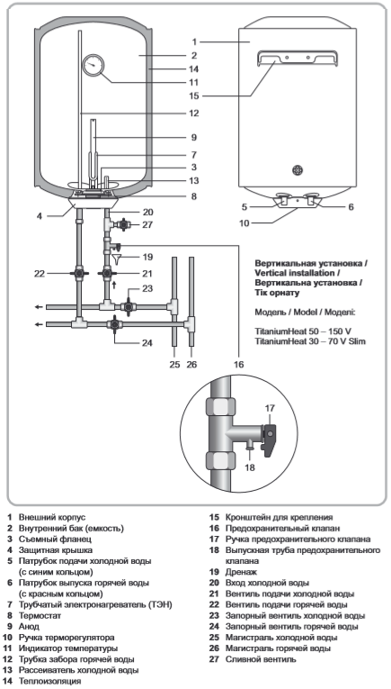 • Монтаж водонагревателей Вертикальный