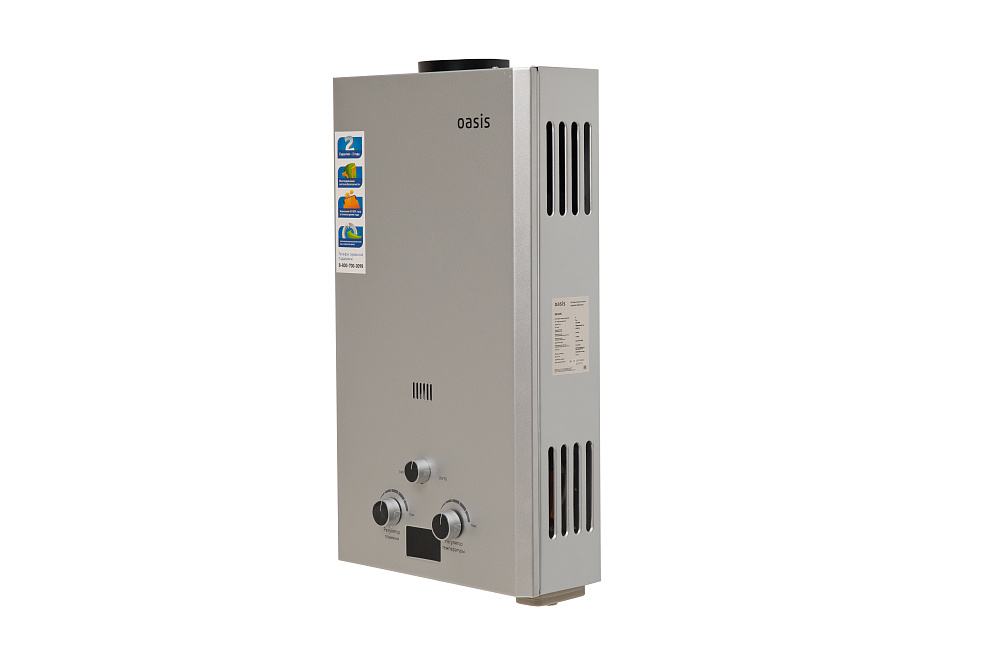 Газовый проточный водонагреватель «Oasis» служит для горячего водоснабжения. Принцип его работы достаточно прост: вода проходит через теплообменник прибора и моментально нагревается от сгорающего газа, поступая к потребителю уже горячей. «Oasis» подходит для любых квартир и частных домов, оборудованных дымоходом. Автоматический розжиг от батареек помогает избавиться от неудобств при неожиданном отключении электричества. Работа прибора осуществляется на природном газе. Отсутствие постоянно горящего запальника и специальный переключатель «Зима-лето» позволяют экономить около 70 м3 газа в год.
